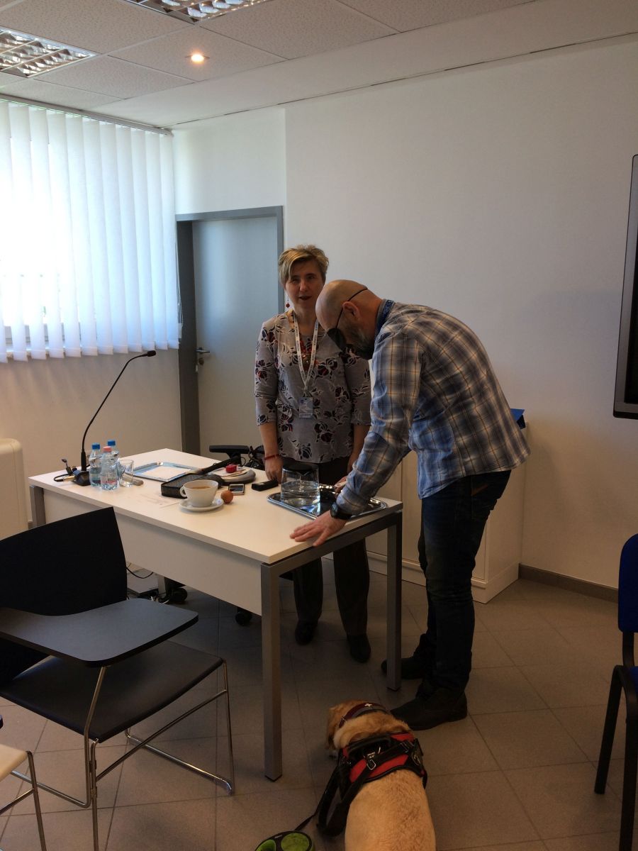 A Munkaerőpiacon Maradás Egyesület szervezésében zajló, a megváltozott munkaképességű munkavállalók munkaerőpiaci integrációját elősegítendő projekt keretén belül, az együttműködő partnerek érzékenyítésének céljából érkezett hozzánk - nem először - Borsodi Erzsike 2019.04.16-án Gesztenye nevű segítő kutyájával együtt egy nagyon kedves, ugyanakkor mélyen elgondolkodtató és megható előadás megtartására.