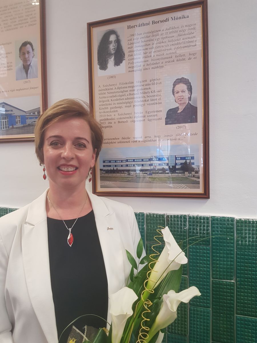 „Nagy megtiszteltetés ért, amikor középiskolám, a győri Jedlik Ányos Gépipari és Informatikai Szakgimnázium "Az életre neveltük Őket" sikeres öregdiákokat bemutató tablófalára az elsők között engem is kiválasztott!” – mondta Horváthné Borsodi Mónika.