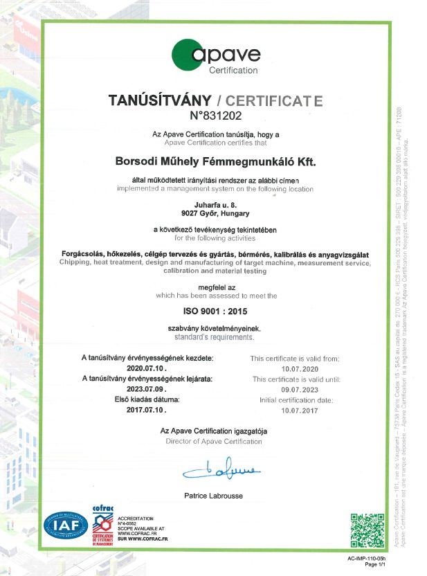 Cégünk 2017 óta rendelkezik a jelenleg is érvényben lévő ISO 9001:2015 szabvány szerint tanúsított minőségirányítási rendszerrel. 2020 nyarán érkezett el az idő, amikor aktuálissá vált ezen irányítási rendszerünk megújítása, annak érdekében, hogy tanúsításunk az elkövetkező 3 évben is biztosított legyen. A megújító és felülvizsgálati auditokat minden esetben egy külsős, független, ún. harmadik fél végzi el, s ez nem volt másképpen idén sem.