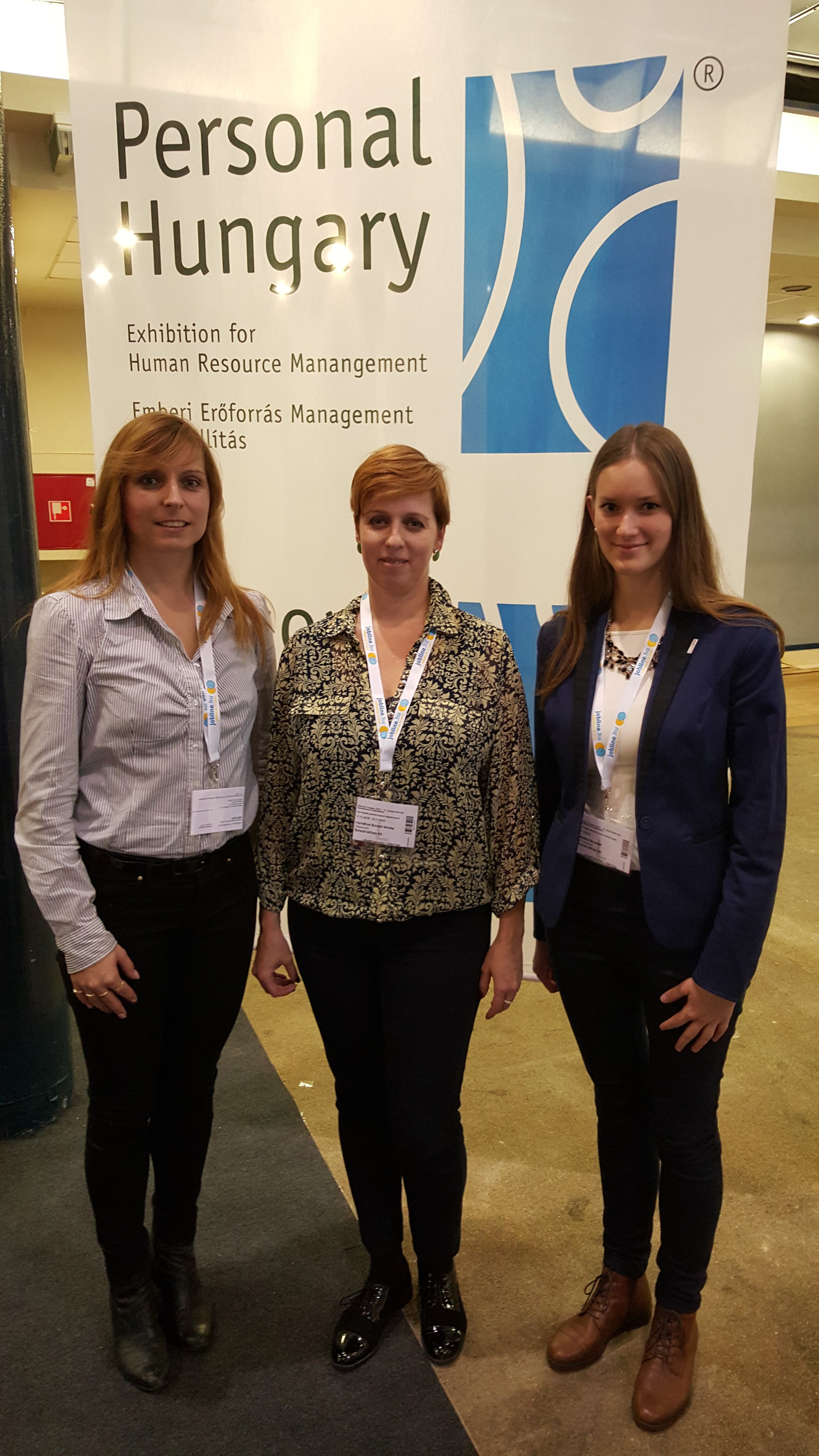 2015.11.11 - én immáron 12. alkalommal került megrendezésre az országos méretű emberi erőforrás menedzsment szakkiállítás, melynek idén a Millenáris adott otthont. A Personal Hungary a HR - szolgáltatók illetve termékeik, valamint a gazdasági élet és a közigazgatás HR - döntéshozóinak találkozási pontja. A gazdag programkínálatban számos HR szakterületet érintő előadás, workshop, pódiumbeszélgetés szerepelt. Vállalatunktól Horváthné Borsodi Mónika, Sándor Adrienn és Geosics Bernadett vettek részt az eseményen. A rendezvény lehetőséget adott a személyügyet érintő napi kérdések, újszerű gondolatok megvilágítására. A kiállítás különösen jó alkalom volt a kölcsönös tapasztalatcserére, más vállalatok HR filozófiájának megismerésére.
